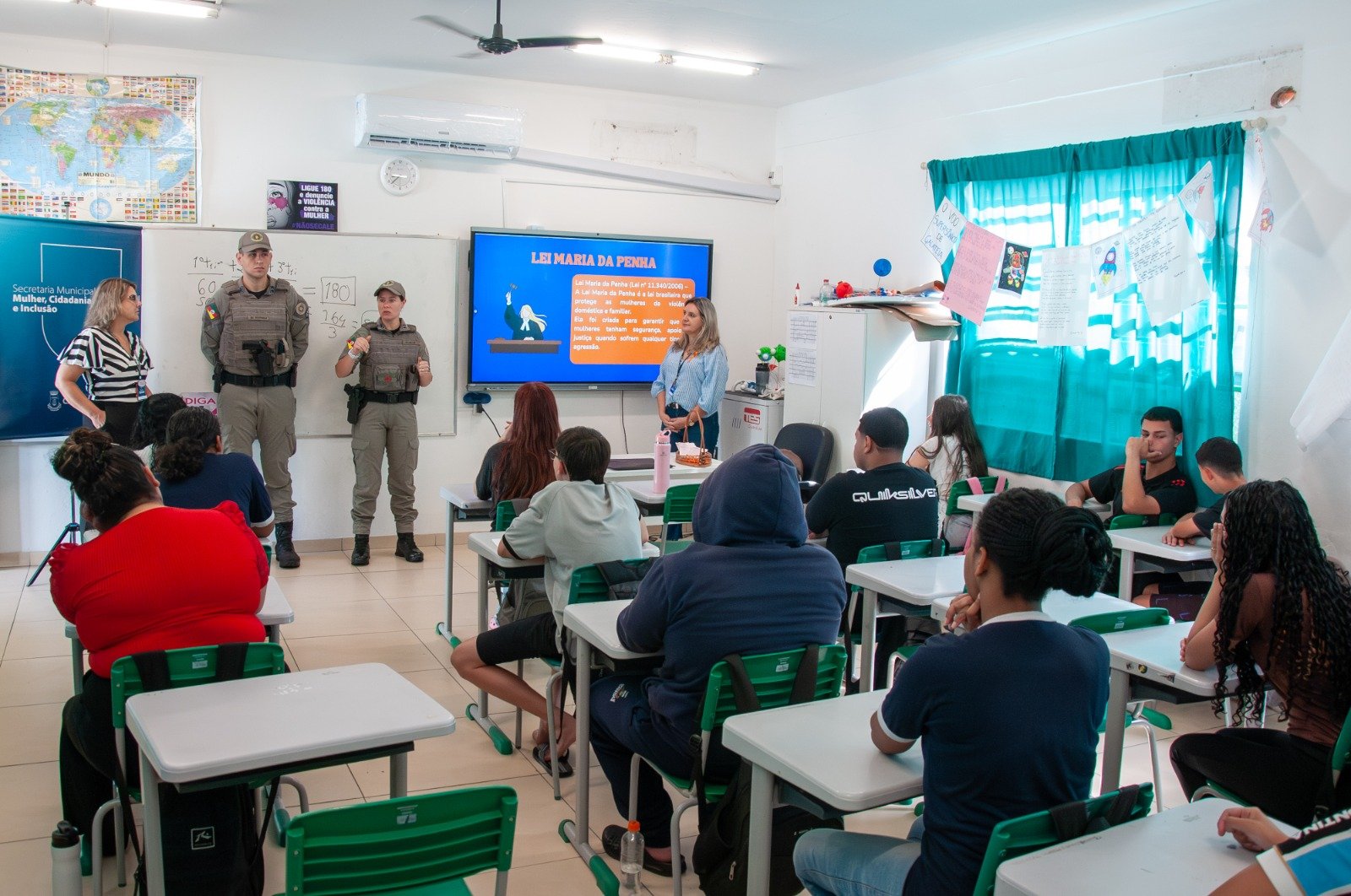 A primeira edição da iniciativa começou na segunda-feira, 1, e segue até a próxima terça-feira, 9, percorrendo quatro escolas da cidade. Em cada palestra, servidoras da secretaria e representantes da rede de apoio conversam por cerca de uma hora e meia com os estudantes, compartilhando informações e ouvindo relatos e experiências dos alunos. Na quarta-feira, 3, a ação ocorreu na Escola Municipal de Ensino Fundamental Coronel Francisco Pinto Bandeira, no bairro Rio Branco, com a participação de soldados da Patrulha Maria da Penha do 15º Batalhão de Polícia Militar (15º BPM).