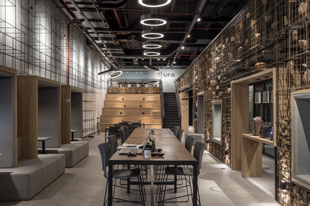 Com inspirações de coworkings europeus e arquitetura sueca, os ambientes UFO se propõem a ressignificar a forma de trabalhar e viver. Para isso, os arquitetos Francisco Tubino, Guilherme Busin, Lucas Dutra e Matheus Stringhini, da MOV.IN Arquitetos, buscaram influências de ambientes de inovação e coworkings europeus, com predominância arquitetônica sueca e escandinava. Materiais urbanos e industriais foram utilizados para criar um ambiente criativo, com destaque para as formas naturais.