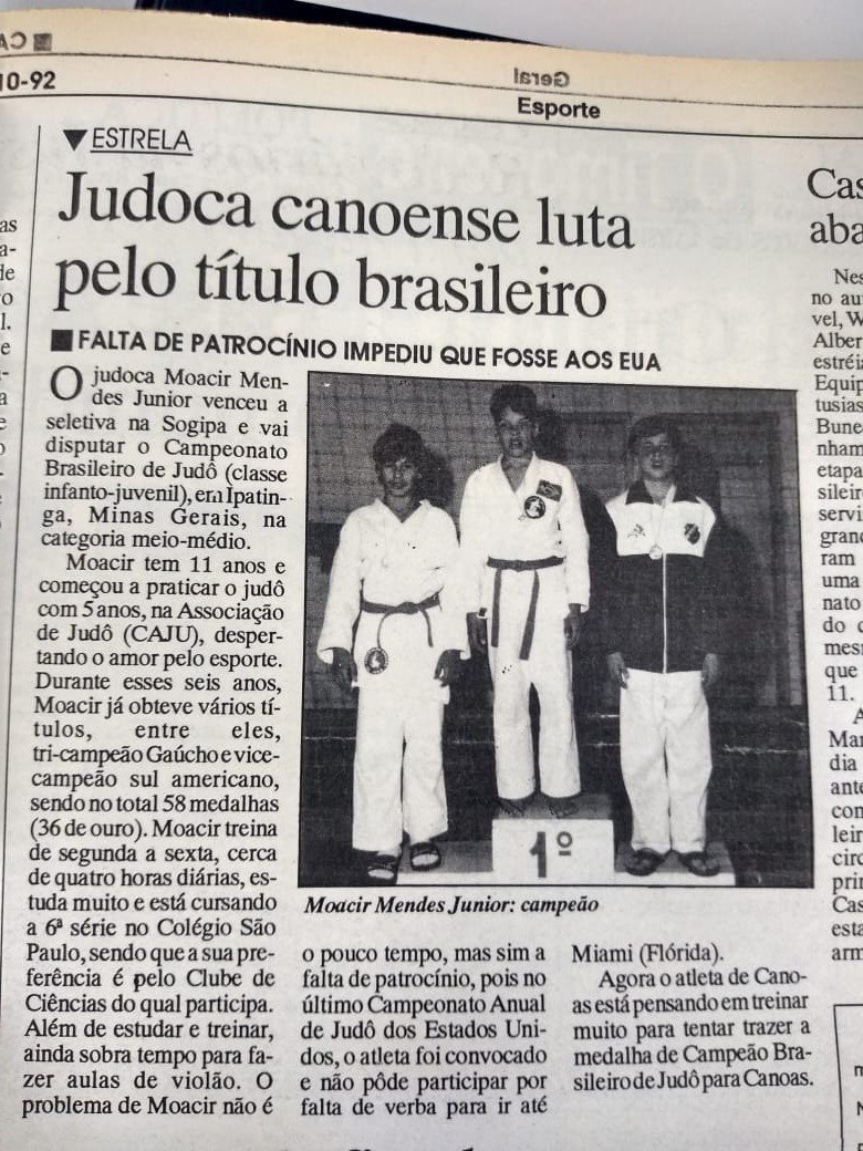 A pequena Sarah Mendes, de apenas 11 anos, esteve na redação do Timoneiro, na tarde da terça-feira, 27, acompanhada da avó, Carmen, mostrando com orgulho a medalha de ouro que conquistou no Campeonato Brasileiro de Judô sub-13, realizado em Curitiba, no Paraná, nos dias 17 e 18 de agosto. A jovem, que treina na Sogipa e na academia Double Black, não perde na sua categoria há mais de dois anos e já garantiu participação nos jogos Pan-Americanos sub-13 e sub-15 de Judô, que ocorrerão no México, na primeira semana de novembro.