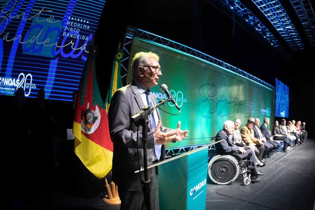 A noite da terça-feira, 1º, foi marcada pela entrega da medalha Pinto Bandeira a dez cidadãos que foram agraciados com a mais alta honraria de Canoas. O evento ocorreu no centro de eventos do ParkShopping Canoas e contou com a presença de autoridades e convidados. Neste ano, os homenageados foram Walter Galvani da Silveira, Francisco Ricardo Terres Trois, Ivo da Silva Lech, Jorge Uequed, Dirceu Franciscon, Cristina Sorrentino, Maria da Graça Galinatti Flach, Ivone Frare, Antônio Jesus Pfeil e Luiz Felipe Scolari. As dez personalidades se destacaram nas áreas da comunicação, cultura, esporte, política e educação, em ações que foram reconhecidas pelo prefeito Luiz Carlos Busato.