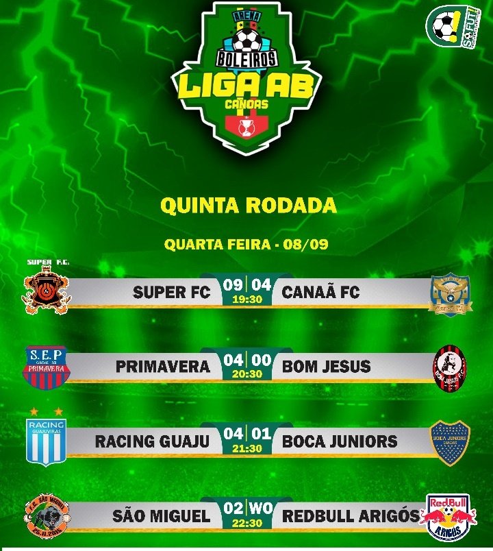 A quinta rodada da Liga Boleiros teve como destaque a vitória do Super F. C. por 9×4 contra a equipe do Canaã F. C.