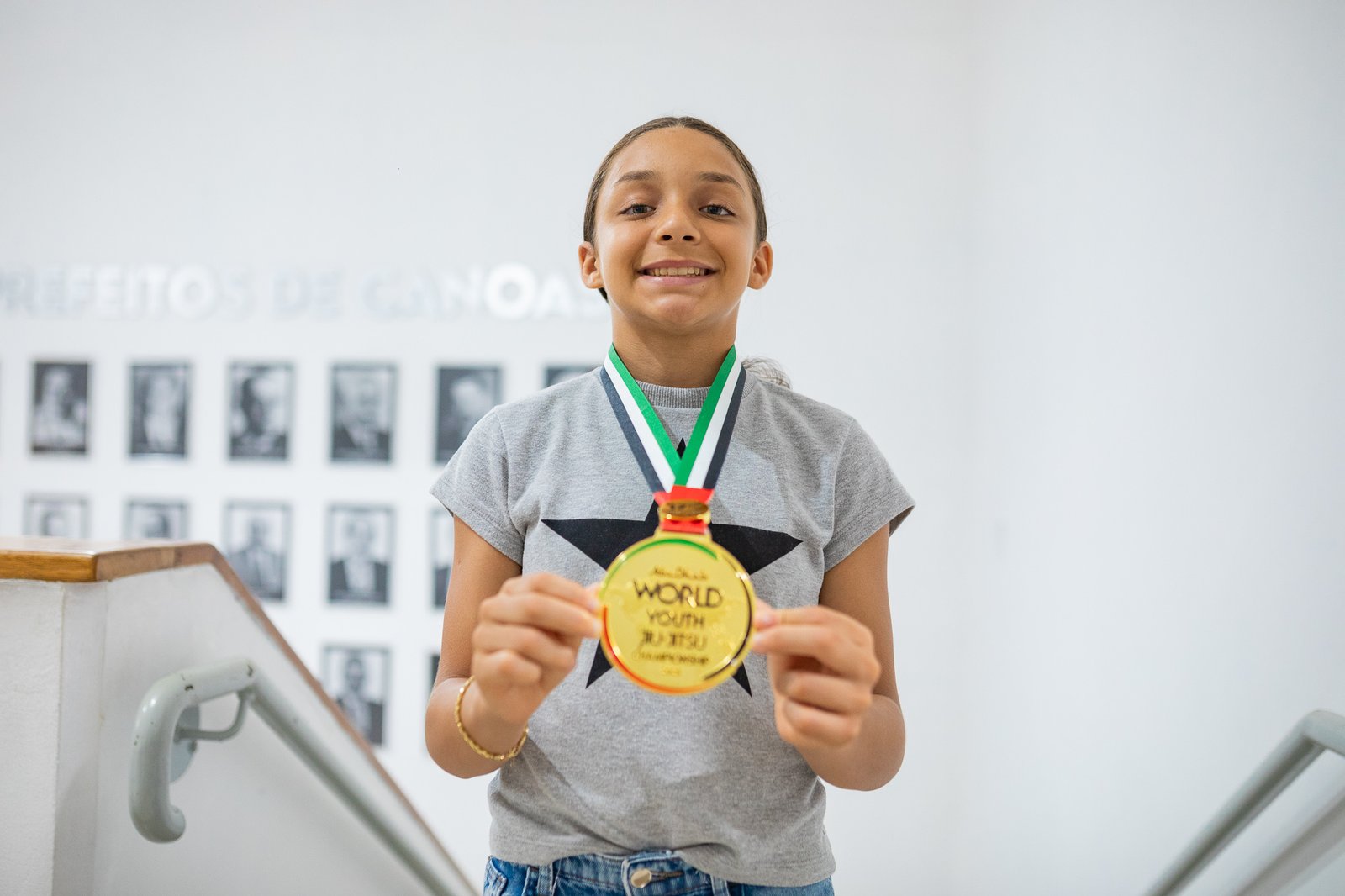 A atleta de jiu-jítsu Katryni Mota foi recebida na tarde desta terça-feira, 9, na Prefeitura de Canoas após conquistar a medalha de ouro no 17º Campeonato Mundial Profissional de Jiu-Jítsu, realizado em Abu Dhabi, no mês de novembro. Representando a equipe Team DM, a jovem atleta destacou-se pela técnica, dedicação e potencial, levando o nome do município ao lugar mais alto do pódio mundial.