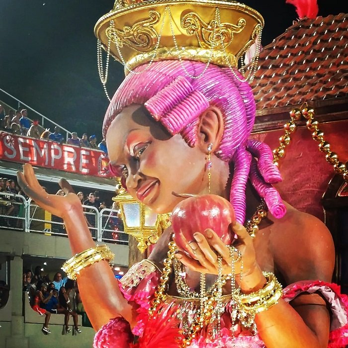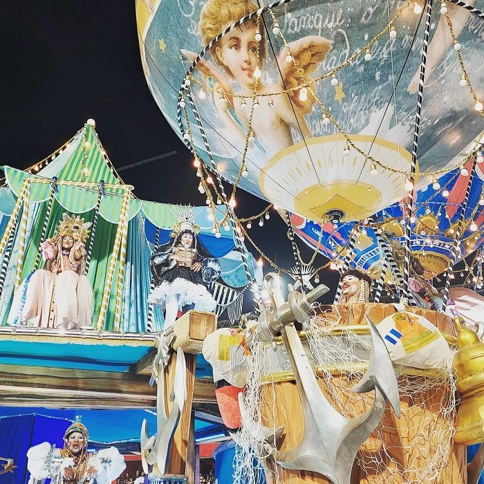 Um dos grandes destaques do desfile foi a alegoria de São Jorge matando o dragão, toda em arame prateado vazado e complementado por iluminação, fumaça e muitos movimentos. A Imperatriz Leopoldinense, do carnavalesco Leandro Vieira, se inspirou na literatura de cordel para falar do imaginário sobre a morte do cangaceiro Lampião, sua ida ao inferno e ao céu.