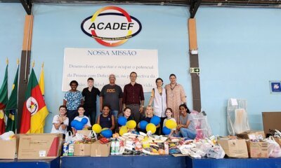 A campanha Páscoa Solidária, promovida pelo Colégio Espírito Santo, levou à ACADEF caixas e sacolas cheias de pacotes de arroz, feijão, massa, óleo de cozinha, molho...
