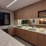 Na cozinha, onde a funcionalidade é essencial, a iluminação LED pode ser aplicada de várias maneiras. A iluminação embutida no teto proporciona uma luz ampla e uniforme sobre as bancadas e áreas de preparação de alimentos. As fitas de LED sob os armários fornecem uma luz suave e direcionada, facilitando a visualização das superfícies de trabalho. Além disso, os spots direcionáveis podem destacar áreas específicas, como a pia ou o fogão, tornando o espaço mais prático e agradável para cozinhar.