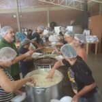No Olmiro Brandão são cerca de cem voluntários envolvidos na organização, logística e preparo das refeições. “São 6.000 refeições realizadas por dia entre café da manhã, almoço, café da tarde e janta”, explica um dos voluntários, Julio Balestrin.