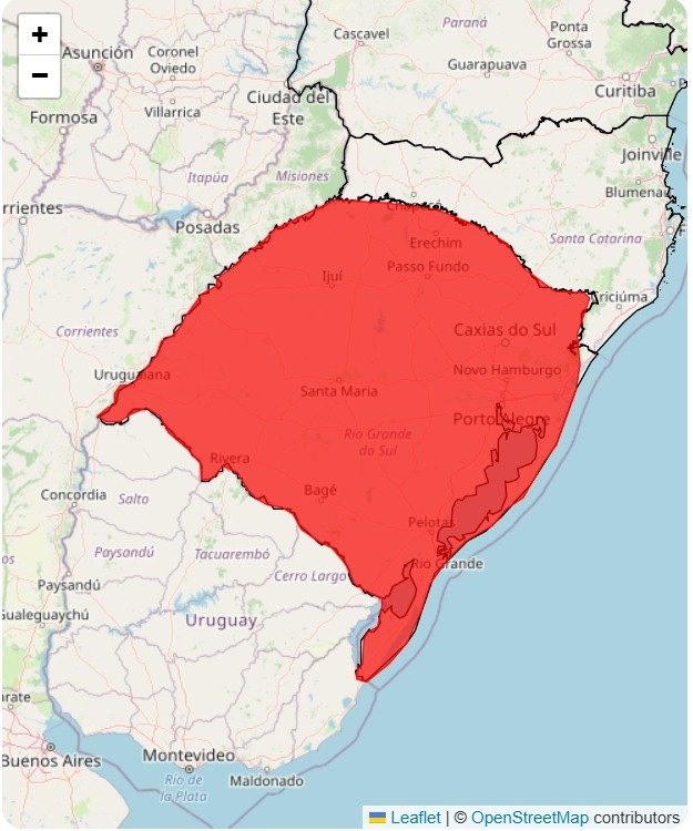 O Instituto Nacional de Meteorologia (INMET) emitiu, na manhã desta segunda-feira, 23, um alerta vermelho, classificado como “Grande Perigo”, para o Rio Grande do Sul. O aviso teve início às 9h10 e segue válido até as 22h.