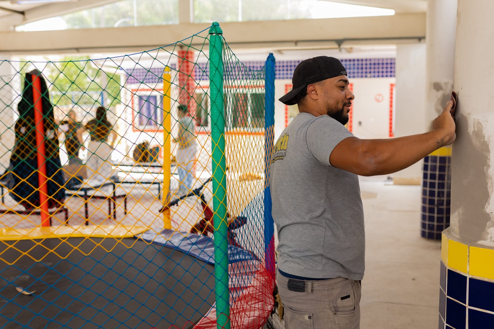 Entre as instituições que passam por obras está a Escola Municipal de Educação Infantil Alcy Paulo de Oliveira, conhecida como Cica, localizada no bairro Mato Grande. A unidade foi severamente atingida pela enchente de 2024 e agora recebe melhorias definitivas. No local, estão sendo realizadas a troca de azulejos, pintura e a instalação de 25 aparelhos de ar-condicionado, que irão climatizar todas as salas de aula e os espaços administrativos.
