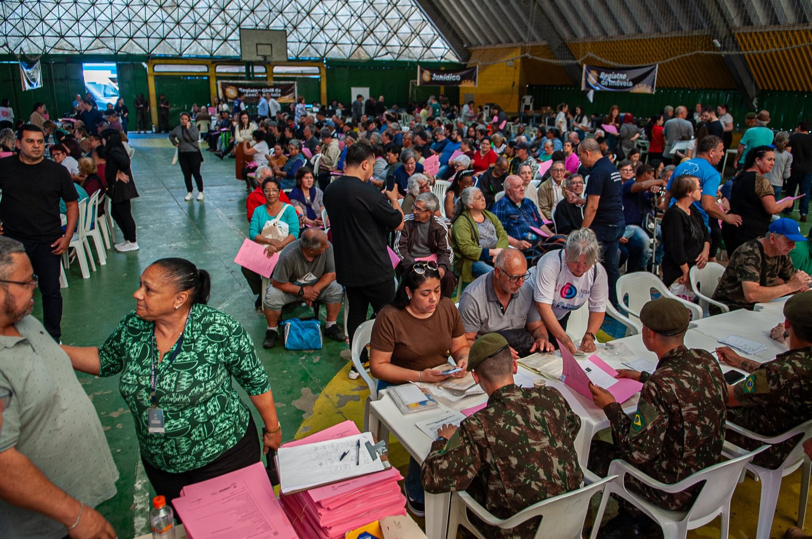 “Aqui dentro deste mutirão cada ator tem um papel específico. Temos o Exército, que faz o acolhimento e cadastro das pessoas, temos o Registro Civil, que emite as certidões, a Defensoria Pública, para os casos jurídicos que precisam de alguma comprovação de posse, a Sehab junto com a Prefeitura fazendo a qualificação deste mutuário, qual a situação que ele se encontra, se é o proprietário, se ele tem ou não documento algum. Nós estamos completamente preparados para isto. A pessoa chega aqui no mutirão e tem todas as situações resolvidas”, conta.