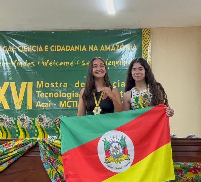 As estudantes Caroline Grzewinski e Manuela Quevedo, do 9º ano da EMEF Prefeito Edgar Fontoura, de Canoas, conquistaram o primeiro lugar em sua categoria na XVI...
