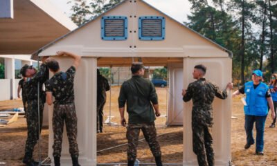 A primeira casa emergencial dos Centros Humanitários do governo estadual foi instalada na quinta-feira, 6, em Canoas. A montagem foi feita por membros do Exército Brasileiro...