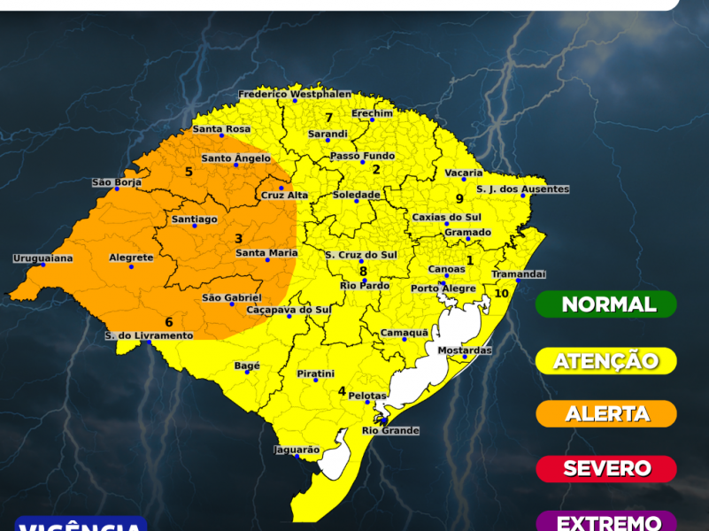 De acordo com as últimas informações de monitoramento da Defesa Civil do Rio Grande do Sul, chuvas fortes a intensas, acompanhadas de raios e temporais devem...